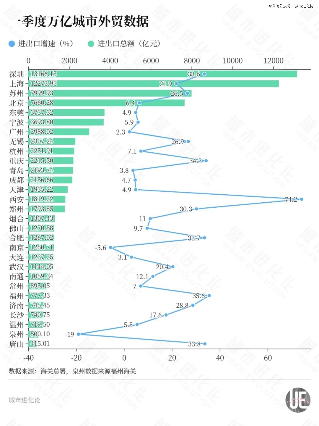 这一进出口增速领跑全国万亿城市,并且甩开第二名重庆近40个百分点。也一举打破去年郑州的纪录,把一季度万亿城市外贸增速冠军的“天花板”拉高30余个百分点,势头何其强悍。